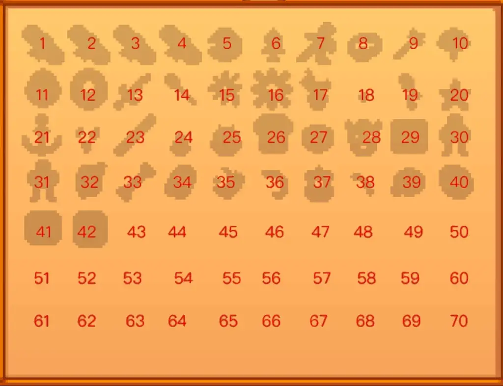 | 31 | Strange Doll | Farm (0.08%), Bus Stop, Town (0.07%), Mountain, Beach (0.06%), Mines, Skull Cavern (0.03%) | No | |||